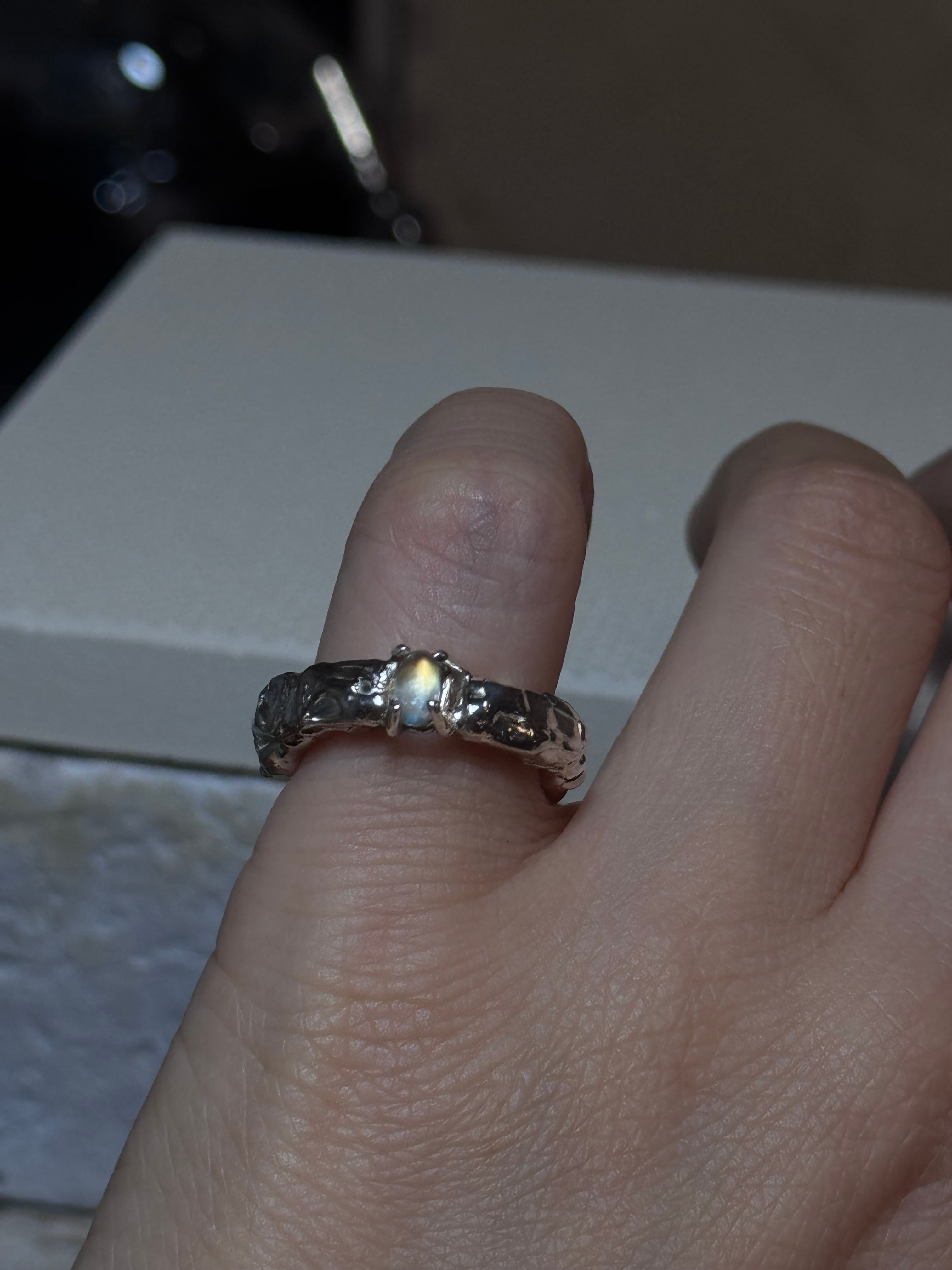 素材: sv925 石:Moon Stone サイズ:5号 *こちらは一点ものとなります。 ご購入完了後、通常3日以内に発送致します。