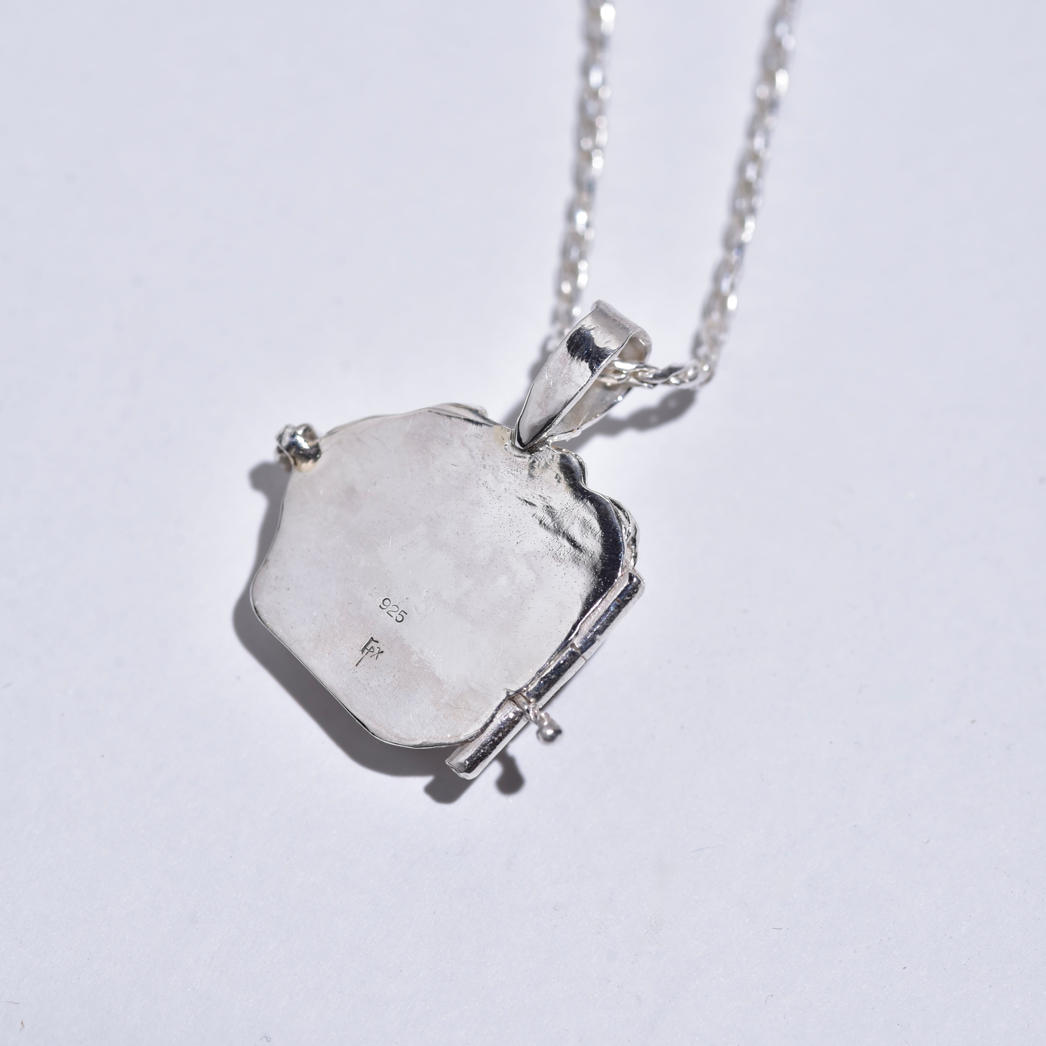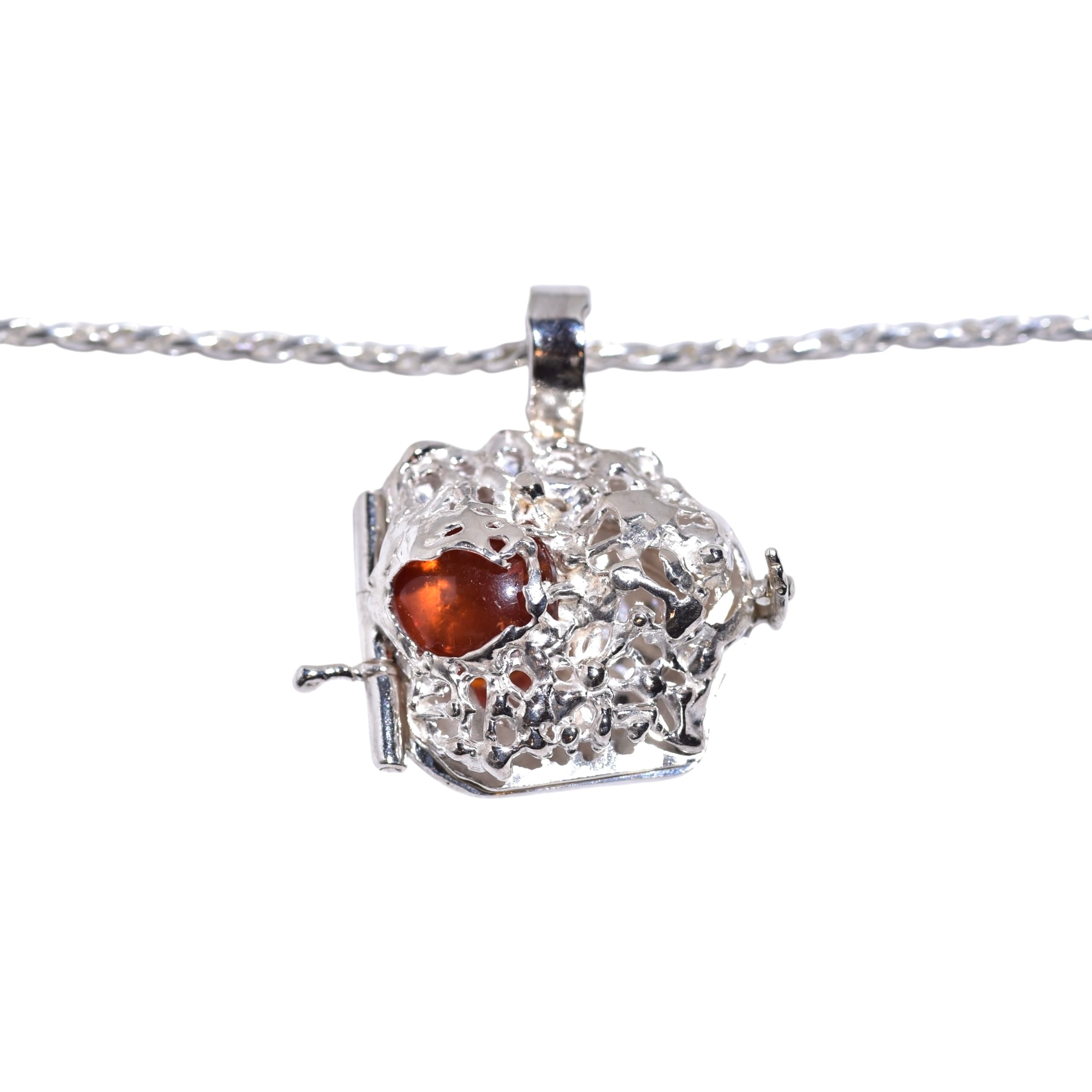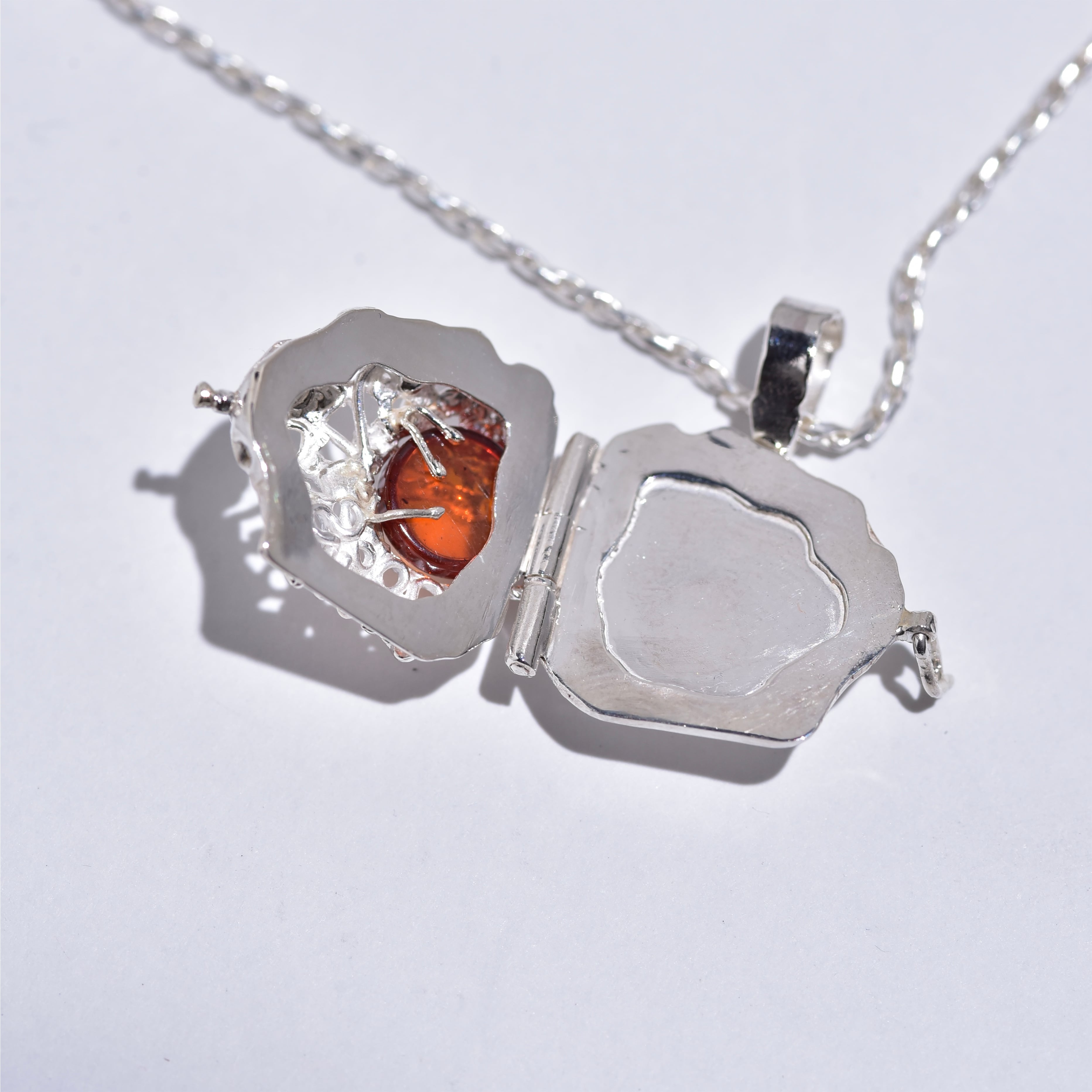 素材:SV925,Amber 技法:彫金 直径:2.5cmx2.5cm Chain:50cm+5cm *こちらは一点ものとなります。 ご購入完了後、通常3日以内に発送致します。